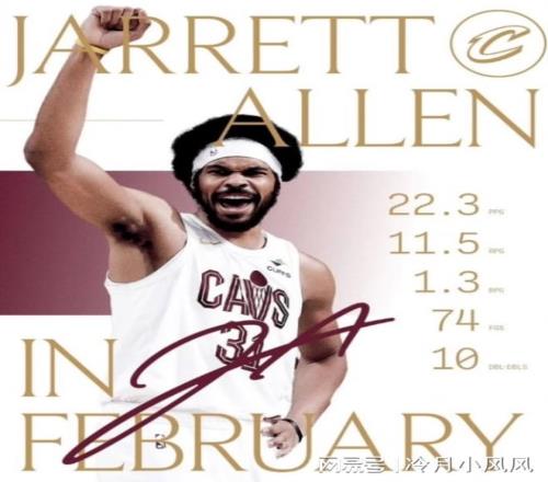 今日,骑士官方晒出了球队中锋贾勒特阿伦整个2月份的场均数据,盛赞其表现。图中显示,2月份,阿伦出战11场比赛,6次20+,1次40+,10次贡献两双(联盟同期次数最多),场均可以贡献22.3分11.5篮板1.3盖帽,命中率达到了恐怖的74%(没有一场比赛的命中率低于60%),帮助骑士取得了8胜3负的不俗战绩。