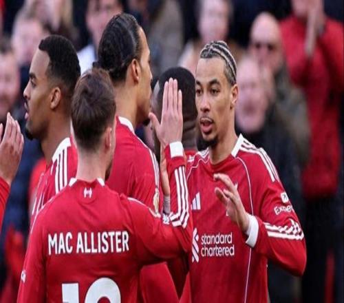 利物浦的攻势并未就此停歇。上半场补时阶段,埃基蒂克再次展现智慧,他巧妙的做球为亚历克西斯·麦卡利斯特创造了空间,后者一脚势大力沉的远射直挂死角,比分变为3-0!带着三球优势,利物浦轻松进入中场休息。