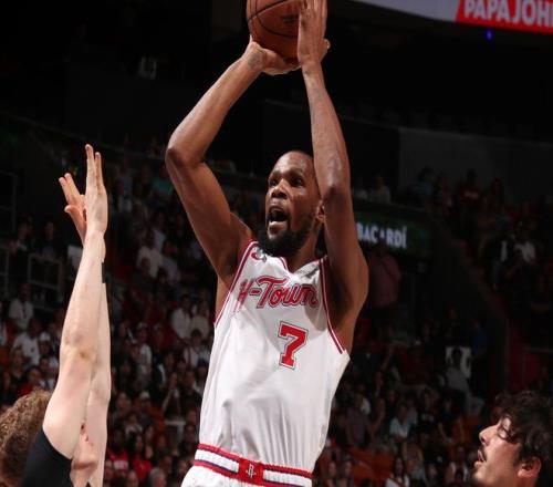 这么一来,火箭队本来出色的内线直接门户大开,热火全场在内线狂揽66分。内线失守,可以说直接打乱了火箭队的进攻节奏。但对于杜兰特这样的超巨和顶级得分手来说,这些都没能影响到他,全场比赛依旧倾其所有,20投12中,以60%的命中率得到全场最高的32分,还有8助攻6篮板。可以说,没有杜兰特的发挥,今天火箭队半场就被打花了。除了杜兰特,阿门的表现同样攻防一体,20分11篮板,频繁冲击内线为杜兰特赢得了喘息机会。末节比赛,火箭队大部分时间其实也咬住了分差,但是威金斯的爆发,直接让比赛失去了悬念。