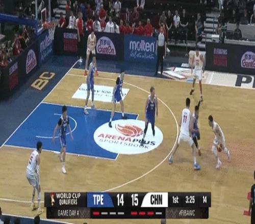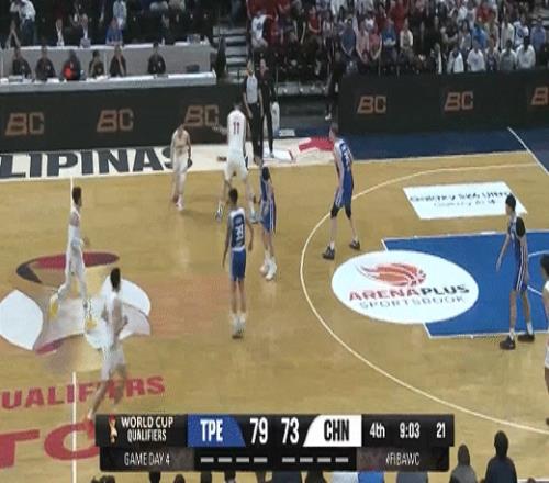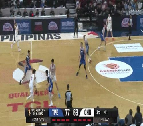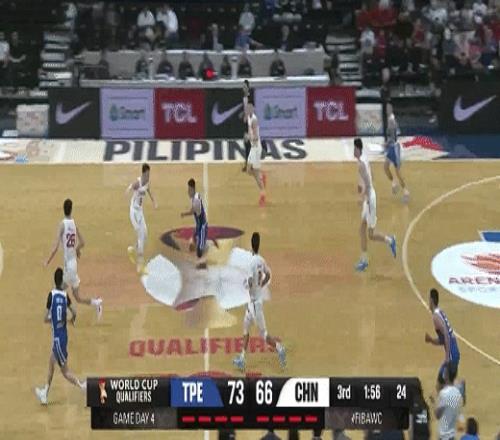 林庭谦、陈盈骏相继得分再度拉大分差!中国男篮66-75中国台北