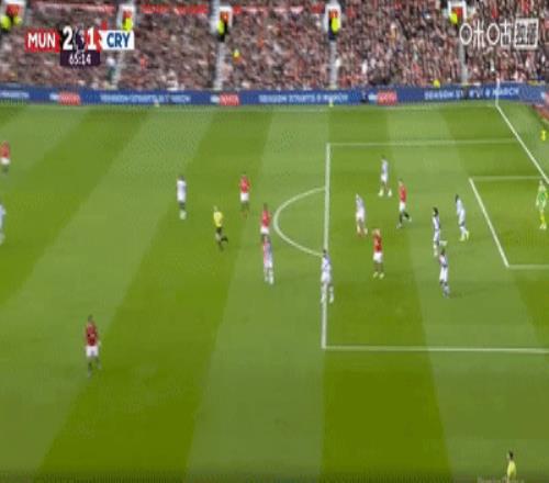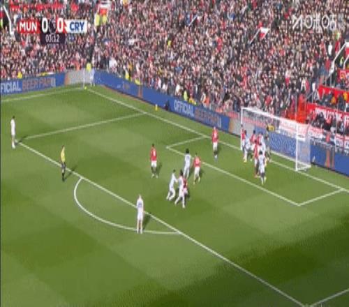 开场不到4分钟,水晶宫前场左侧开出角球,后点拉克鲁瓦摆脱约罗的盯人防守,头球攻门将球顶进球门死角,曼联主场一球落后。