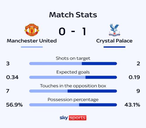 曼联此役上半场表现糟糕,开场196秒就被丢球。比赛的前30分钟,曼联只有1次射门,在对手禁区内只有3次触球,预期进球0.01,这是曼联本赛季英超前30分钟最低值。