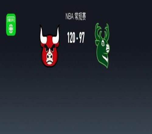 第四节公牛布泽利斯拿下7分,雄鹿小特伦特拿下3分,最终公牛120-97战胜雄鹿