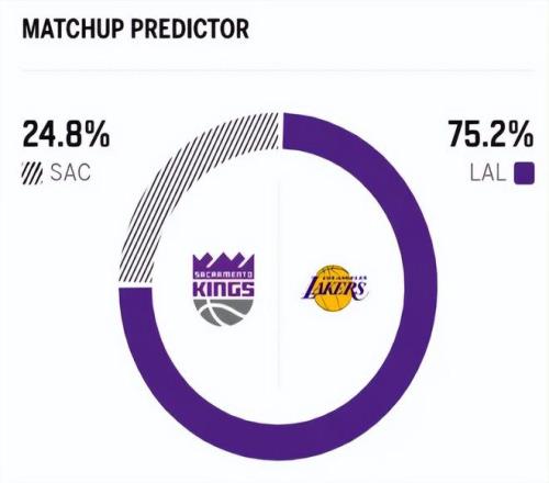 赛前,美媒ESPN对本场比赛进行了胜率预测,湖人队胜率高达75.2% ,国王胜率则仅有24.8% ,劣势明显 。
