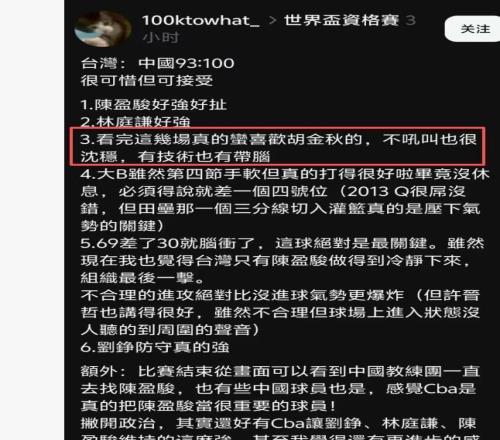 从落后11分的深坑里爬出,战胜了中国台北队。