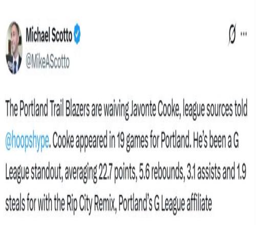 签下扬布拉德后,开拓者决定裁掉库克。库克为开拓者出战了19场比赛,他在G联赛表现十分出色,代表开拓者下属球队混音队场均得到22.7分、5.6篮板、3.1助攻、1.9抢断。目前,开拓者拥有2名双向合同球员(扬布拉德和乐福)与15名标准合同球员,球队18人大名单还未满员。
