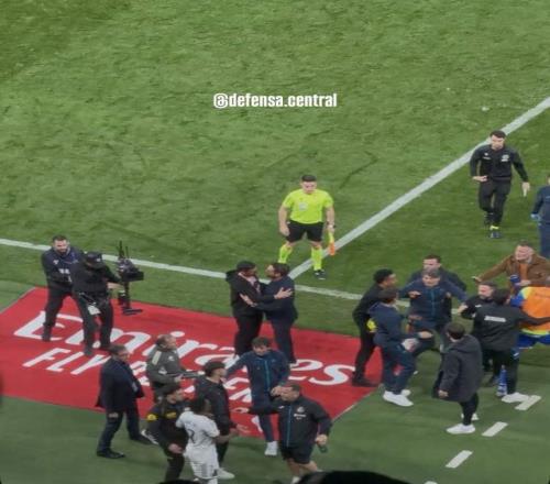 本场比赛维尼修斯再次错失单刀。数据显示,这是他职业生涯第11次对阵赫塔费,至今未能取得任何进球。赫塔费似乎成了巴西人的绝对克星。赛后还发生了冲突。记者Jose Padilla消息称,维尼修斯、米利唐赛后与赫塔费球员恩约姆发生口角,只得被工作人员拉开。输球的郁闷,加上对手的挑衅,情绪失控似乎也在所难免。