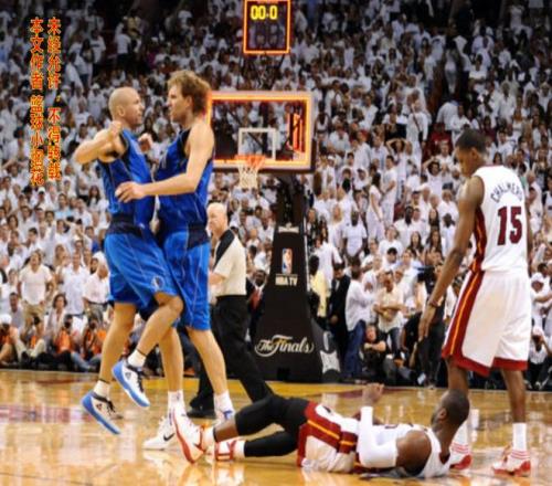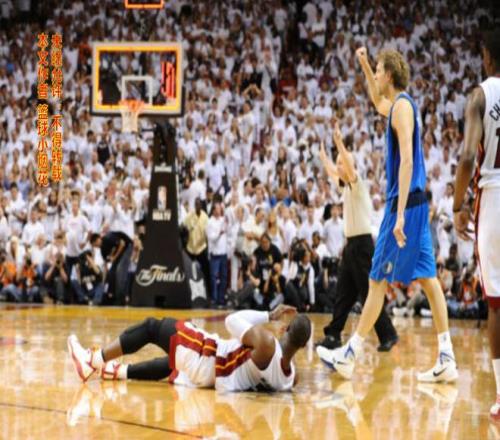 诺维斯基运了两次球,一个背转身连接一个小小的后撤步,重心向后拉,这个小连招是诺维斯基要施展金鸡独立前的预备动作!波什果然上当,他的重心向前一偏,诺维斯基马上低头运了一下球就往篮下冲,哐哐两大步冲到禁区,使用受伤的左手上篮打进!绝杀!小牛不可思议地逆转绝杀了热火!换个角度再来一张照片。