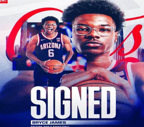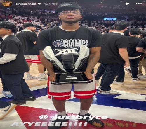 勒布朗今天在自己的实时动态更新了一则好消息,他二儿子布莱斯-詹姆斯所在的亚利桑那大学拿到了赛季首冠。