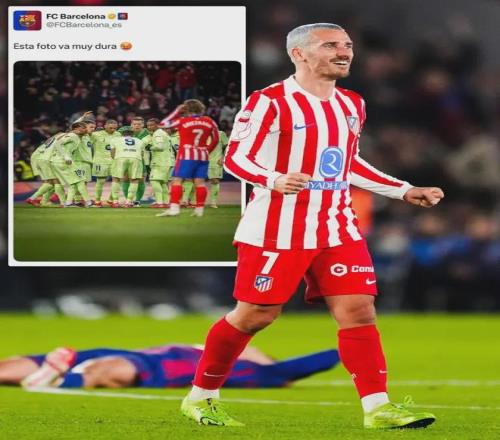 赛后,马竞球员格列兹曼晒出了一张引发争议的照片:背景是终场哨响后瘫倒在地的巴萨球员,配文:“这照片太狠了。”