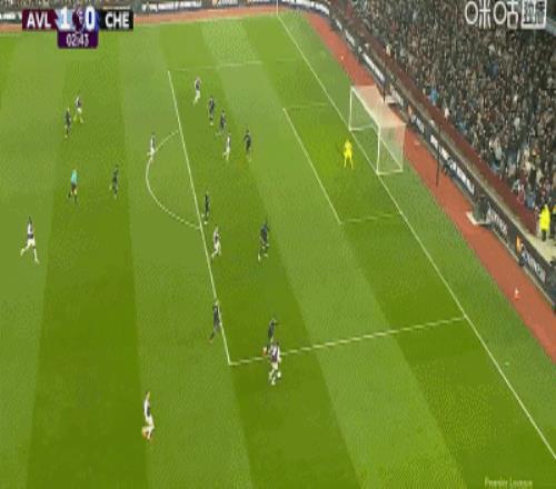 第2分钟,贝利助攻,道格拉斯-路易斯门前巧射破门,维拉1-0切尔西