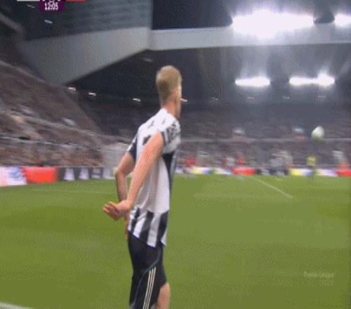 上半场前半段,纽卡打得相对较好的进攻,一次来自于界外球掷出后的45度角传中打后点: