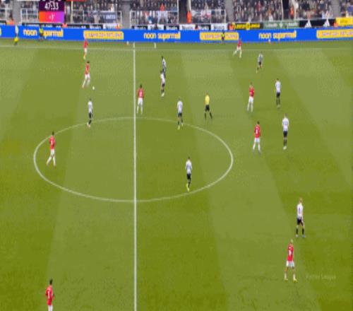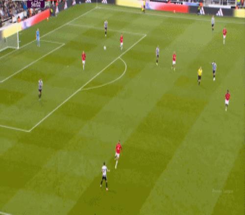 连续两场迎来人数上的优势,这本来是极为有利于曼联的发挥,库尼亚随后在特里皮尔身上更是再次打出明显优势,但被纽卡堵住: