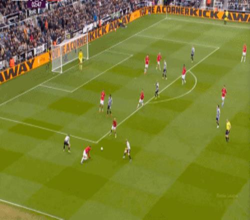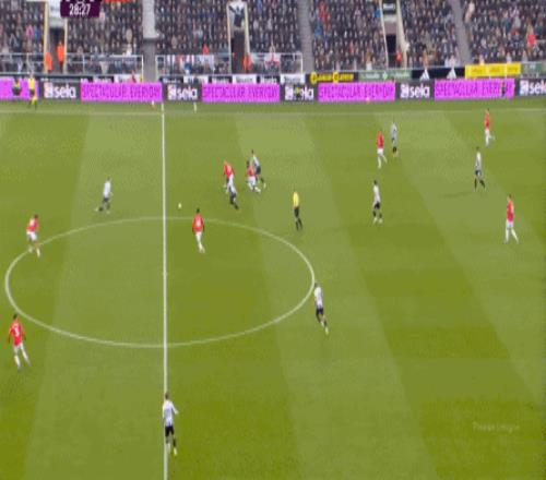 除此之外,面对如今增加了全面性,从而在中路也有战术效果的戈登,马奎尔和约罗显得毫无办法,根本跟不上脚步,所以纽卡斯尔的外围优势确实很明显: