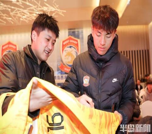 在出征仪式上,主教练郑智和U23门将李昊依然人气高涨,郑智与李昊也是耐心满足了球迷们的合影和签名需求。另外,西海岸新赛季战袍的胸前广告位增加了“金沙滩啤酒城”的字样,背后广告位则增加了“灵山岛、竹岔岛”的字样,足球也将逐渐成为西海岸新区的一张名片。