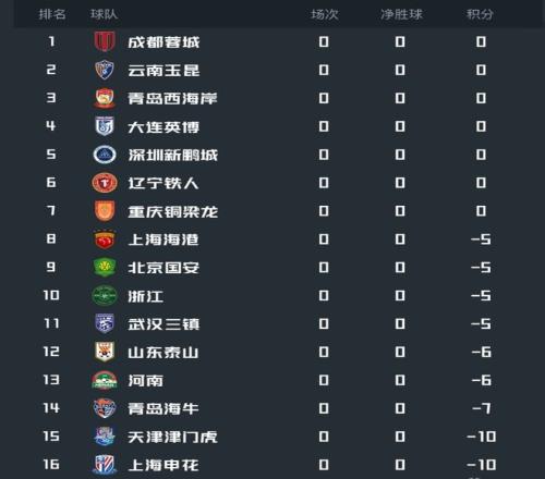 这是一张前所未有的中超积分榜,一场比赛还没有打,山东泰山就以-6分排在积分榜第12位。今年1月底,有九支中超球队被中国足协处罚,扣除了相应的积分,山东泰山从-6分起步,从首轮开始,就肩负着“填坑”的重任。