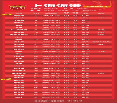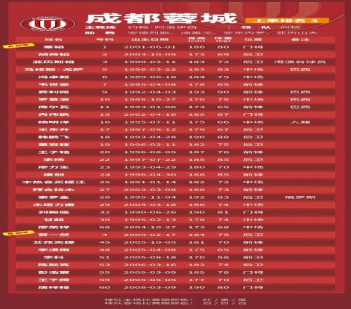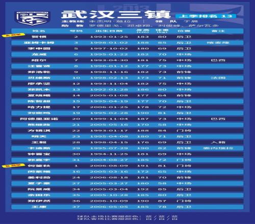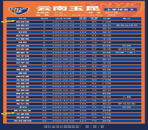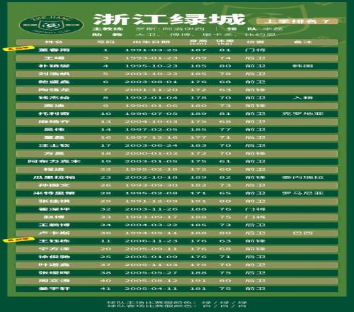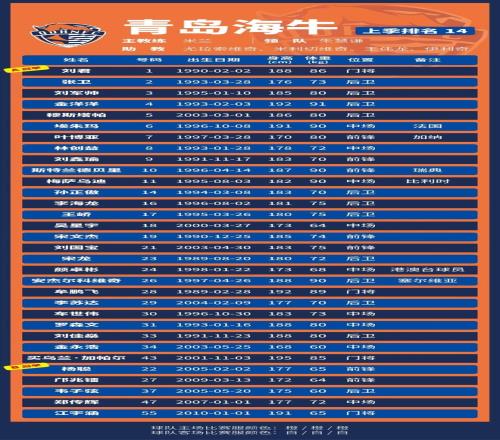 p.s.数据采用各队中超报名表登记内容,