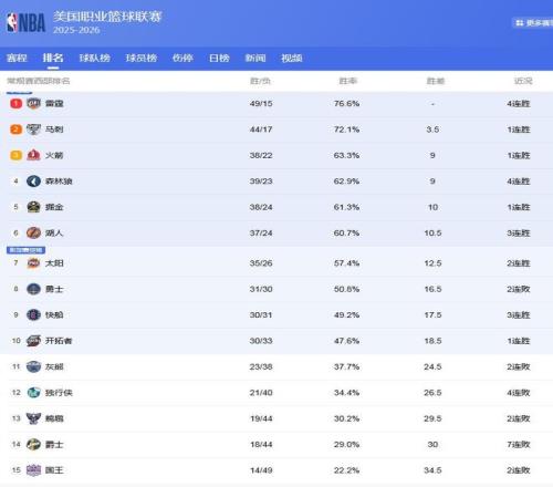 西部前2名的雷霆、马刺依旧优势很大,而且随着亚历山大复出,雷霆战绩也稳住了,本赛季2队大概率锁定前2!不过西部第3的位置,争夺非常激烈!