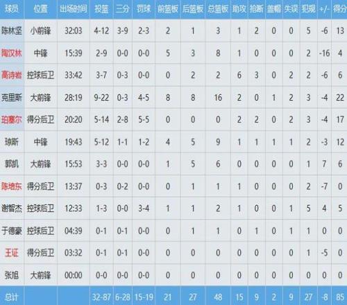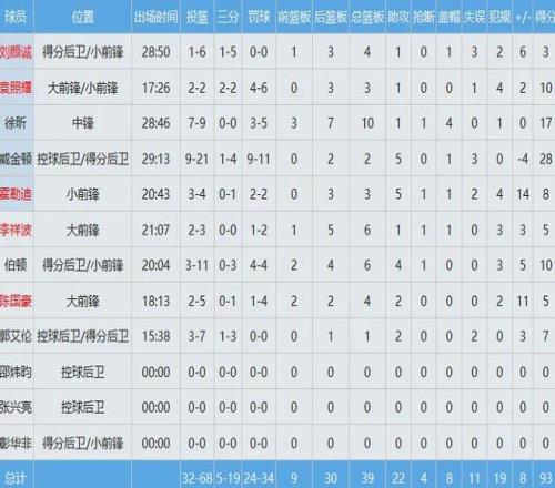 山东队数据如下:
