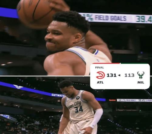 由于大比分落后,球队眼看赢球无望,字母哥在比赛中怒砸篮球发泄不满,就表情看,他心情非常不好!