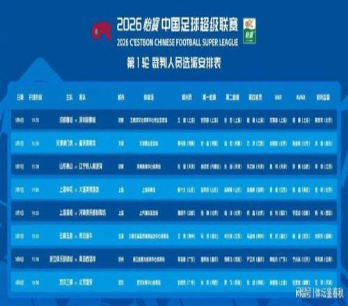 本周末,中超联赛将战火重燃。今天,中足联正式公布了2026赛季中超首轮的裁判选派名单。8场比赛的执法团队全部确定。联赛揭幕战成都蓉城与深圳新鹏城的比赛,主裁判是来自上海的王迪,他是目前中超联赛执法经验最丰富的裁判员之一。