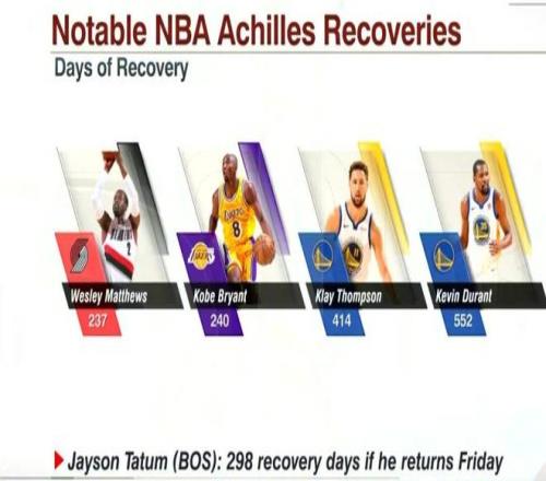 也就是说,尽管医学在发展,但对跟腱撕裂的恢复预期却在延长,说明从前的激进复出并不利于伤病的完全恢复。