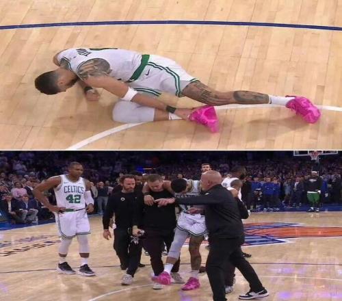 去年5月13日,东决G4最后时刻,塔图姆轰然倒地,随后确诊右脚跟腱断裂