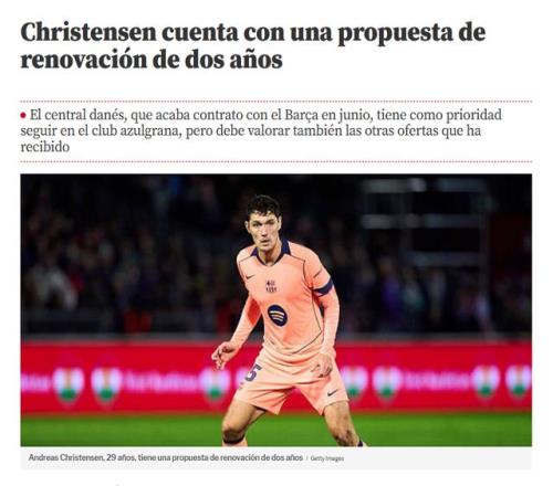 由于左膝前交叉韧带部分撕裂,克里斯滕森还在养伤。3月6日,《世界体育报》透露,巴萨给克里斯滕森开出续约合同,但要求丹麦后卫大幅降薪。今夏合同到期的滕森,首选留在巴萨。不过,丹麦后卫还有来自沙特等多份邀约,并不急于做决定。