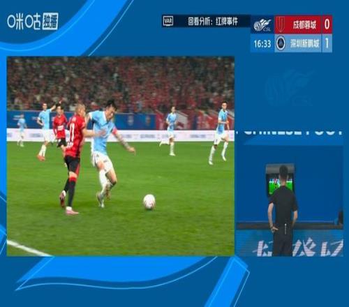 整场比赛的转折点,应该就是老将姜至鹏被红牌罚下。比赛才踢到5分钟,客队的深圳新鹏城就取得美好开局——新外援阿代米接球后摆脱对手后卫的防守,转身抽射得分,帮助深圳新鹏城0-1领先。比赛的前18分钟,客队都踢得很好,成都蓉城尽管进攻不断,但都没有很好的破门机会。