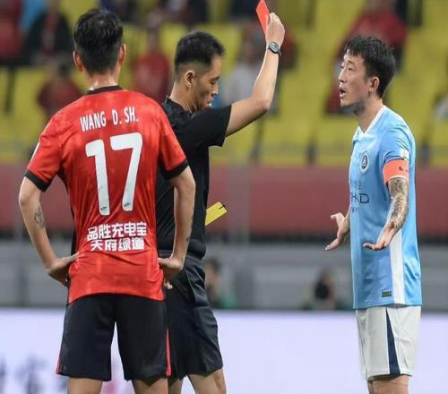 深圳队虽然早早破门,但好景不长,第18分钟姜至鹏防守的时候有抬肘的动作,而且打到席尔瓦的面部,导致后者流血受伤。裁判观看VAR后改判,姜至鹏被红牌罚下,这也是新赛季的第一张红牌。少打一人的深圳很快失球,韦世豪传中找到费利佩,后者发挥了支点的作用,回做给席尔瓦,后者迎球劲射破门,蓉城1-1扳平比分。扳平比分的蓉城士气大涨,加上人数占优,费利佩和胡荷韬连入两球,半场结束蓉城把比分扩大3-1。