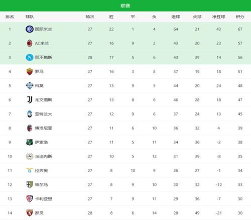 终场哨响,那不勒斯2-1击败都灵,迎来联赛两连胜。拿到这3分之后,那不勒斯积分达到56分,依旧排名意甲第三,但与第二名AC米兰之间的差距已经缩小到1分。