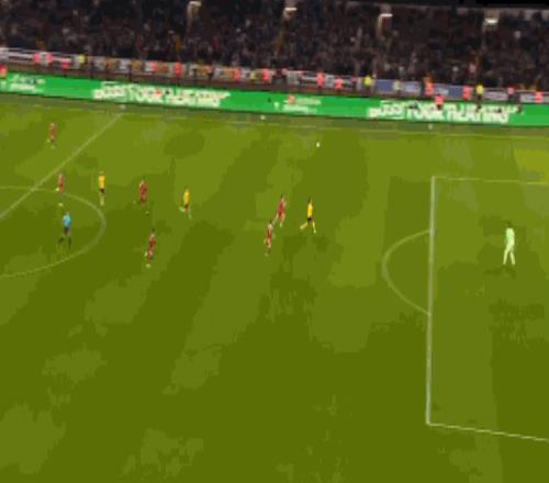 第90分钟,索博漏球失误,黄喜灿破门,狼队1-3