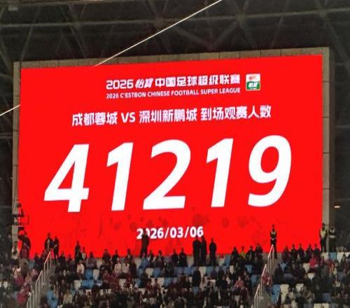 北京时间3月6日19点35分,2026赛季中超联赛第1轮,揭幕战在成都五粮液文化体育中心成功打响,成都蓉城坐镇主场迎战深圳新鹏城,41219名现场观众见证。