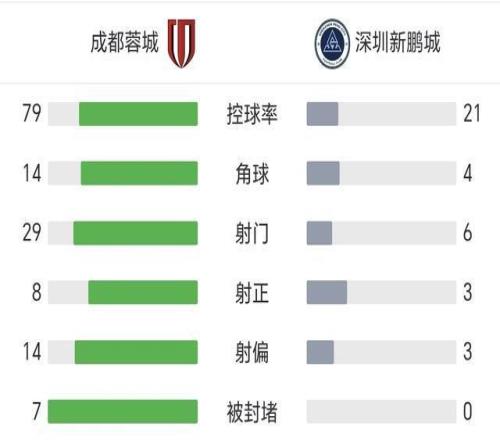 赛后统计,蓉城的控球率高达79%,轰出了29次射门,各项数据全面碾压,展现了争冠热门的强劲实力。