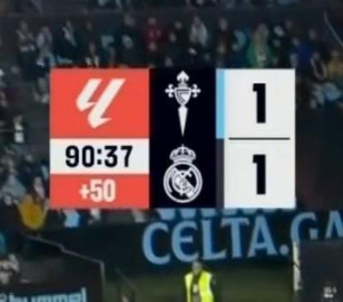 多少皇马vs塞尔塔导播在记分牌上给了50分钟伤停补时