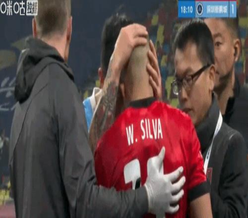 在昨夜的中超揭幕战中,代表蓉城首发出战的韦林顿-席尔瓦在第15分钟,一次边线附近拼抢中,面部遭到37岁的前国脚、新鹏城队长姜至鹏的肘击,当场血流不止,痛苦捂着脸躺在地上。