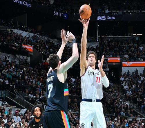 第一节比赛末段,快船率先占据主动权,依靠米勒和马瑟林的轮番冲击篮下,取得微弱领先优势。首节比赛结束,快船32-25领先马刺队7分。次节比赛开始,科内特教科书般的老大爷勾手,帮助马刺队先下一城,伦纳德弯道超车,直捣黄龙挑落两分,卡斯尔三分线外接球就投,一击命中,伦纳德侵略性十足,霸王龙三大步上篮也擦板得分,文班亚马踏雪无痕抢到进攻篮板,飞身补篮得手,小卡又一个抢断快攻,反击一条龙上篮命中,文班自信三分开火一箭穿心,马刺在第二节后半段陷入得分荒,快船趁机全民皆兵,继续扩大领先优势到两位数。