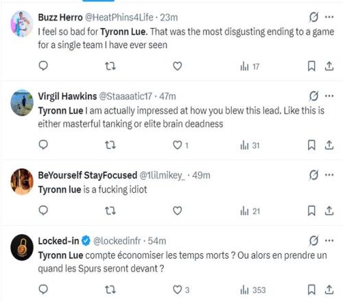赛后不少的快船球迷都对泰伦卢不满,他们认为快船被逆转25分是泰伦卢的过错: