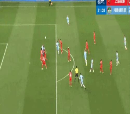 从慢镜头来看,在队友头球摆渡瞬间,两名河南队球员处于越位位置,但钟义浩并没有处于越位位置,至少两名海港球员拖在了钟义浩的身后。