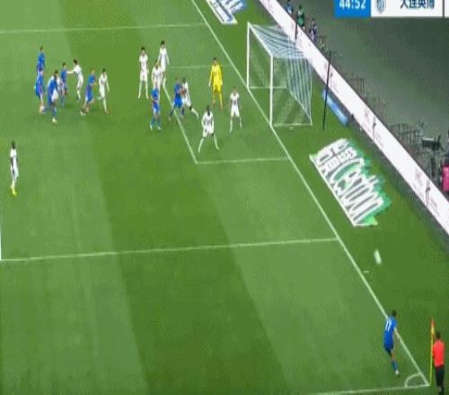 第45分钟,高天意主罚左侧角球,盖伊头球冲顶破门,2比1!
