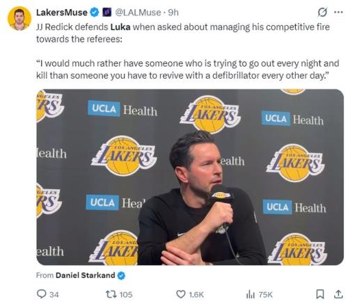 而在对阵步行者的赛后,记者谈到东契奇吃到第15次技术犯规对裁判喋喋不休时雷迪克发声维护:我宁愿球员每场都拼到极致、充满斗志,也不想看到无精打采被逼着上场的人。