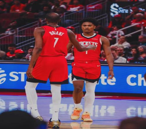 4号秀阿门-汤普森为火箭首发出战60场,场均出战37.1分钟,得到17.6分7.7篮板5.3助攻1.6抢断0.6盖帽2.5失误,三项命中率:51.8%,20.6%,76.7%。场均抢断联盟第7,场均正负值+4.9联盟第21,在火箭队内仅次于杜兰特。