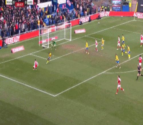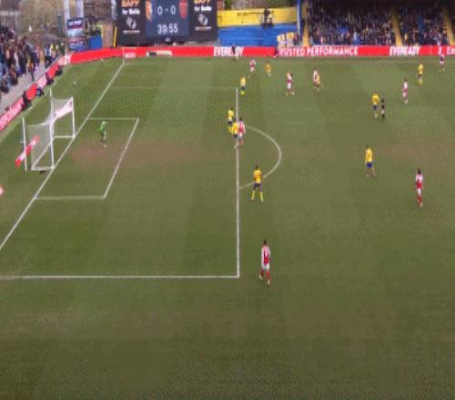 第50分钟,萨蒙回传莫斯克拉被断,威尔-埃文斯破门,阿森纳1-1被扳平!