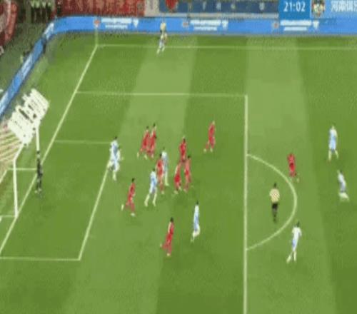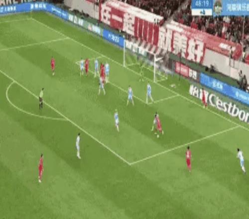 下半场,海港马上换上蒯纪闻。而河南队继续猛攻猛打,进攻效率很高。第53分钟,一次相对简单的配合就撕破海港防线,幸亏颜骏凌迅速倒地化解险情。