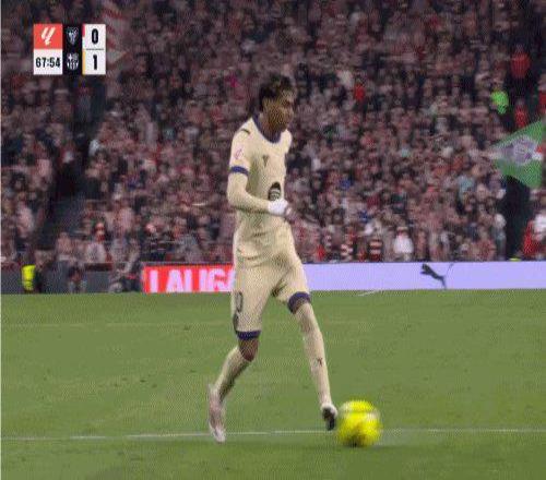 第68分钟,佩德罗左路成功内切后大范围横传,亚马尔插上禁区内兜射,皮球击中立柱后弹入网内。