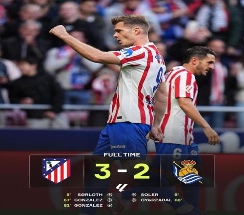 第81分钟,尼古拉斯·冈萨雷斯在禁区内高高跃起头球破门,上演梅开二度的同时也打进绝杀进球。最终,马竞3-2险胜皇家社会,收获联赛三连胜。