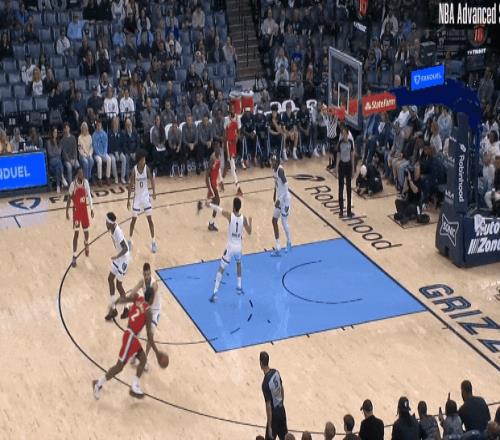 ——堵中放边进入罚球线以下,三人合围,知道亚历山大必须回球弧顶、快传弱侧,于是X字轮转。