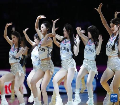 3月7日,拉拉队在比赛间隙表演。新华社记者 孟永民 摄