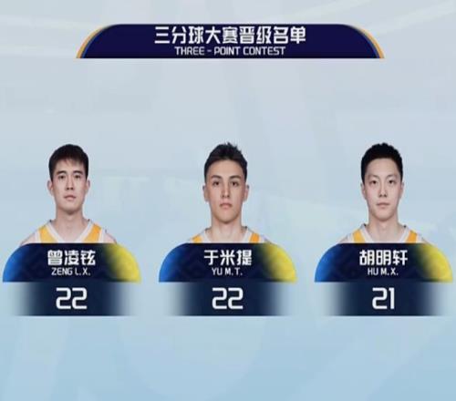 由于胡明轩与于米提均是22分,双方进行30秒加赛。胡明轩率先登场,他前两个点均是5中4,随后中路弧顶5中5表现出色,三个点15中13获得13分。