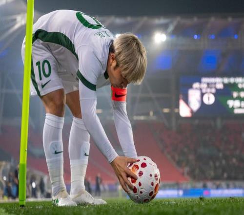 3月8日,北京国安队球员张稀哲在比赛中准备发角球。新华社记者 肖艺九 摄